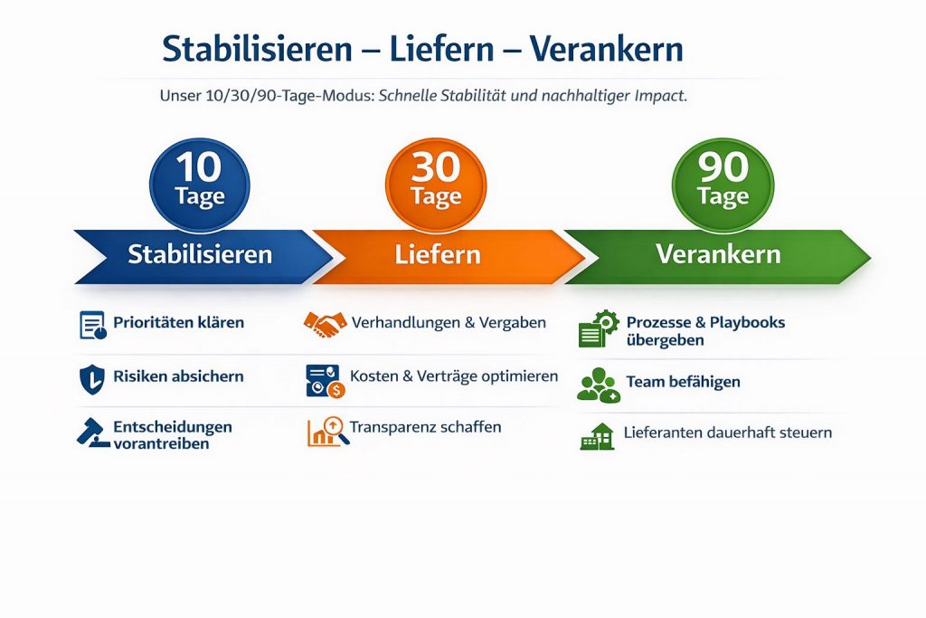 - Verankern: Lieferantensteuerung & Governance so aufsetzen, dass es nach dem Mandat weiterläuft